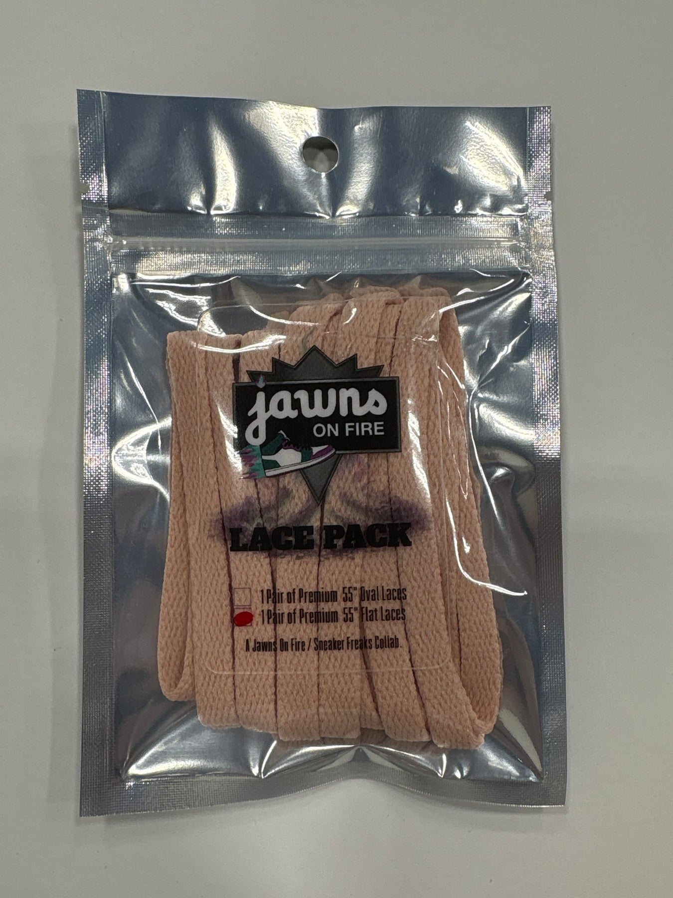 Made to pair effortlessly with your favorite kicks, the Sneaker Freak Flat Laces - Peaches & Cream comes in  and is perfect for any look – from chill days to standout nights. And because it’s from Jawns on Fire, you already know it’s authentic.